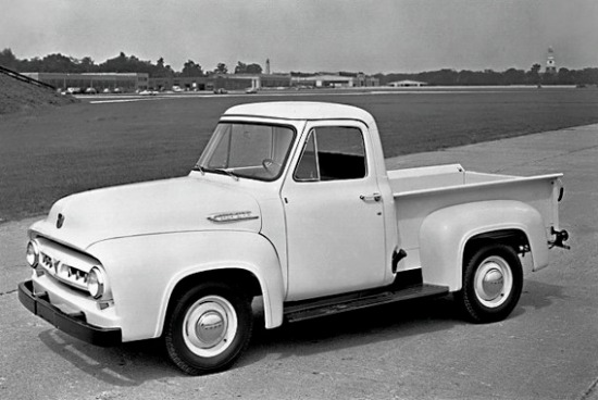 福特F系列皮卡誕生于1948年,是為了取代福特此前基于汽車生產(chǎn)的皮卡車型。第一代福特F系皮卡看起來(lái)并不是那么威猛,細(xì)長(zhǎng)而圓潤(rùn)的發(fā)動(dòng)機(jī)蓋以及多橫幅的進(jìn)氣格柵讓這款車的前臉看起來(lái)很可愛(ài)。第一代F系列車型有2門版和4門版兩種車身結(jié)構(gòu),其中2門版被稱為pickup:皮卡。而4門版被稱為paneltruck:小型運(yùn)貨汽車。